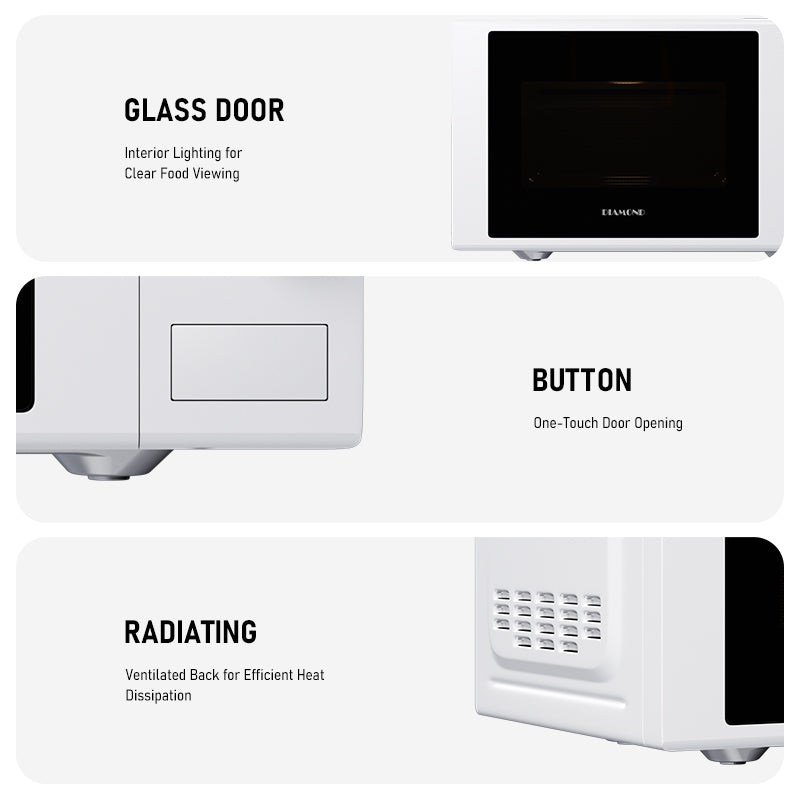 With Diamond Brand, you are assured of exceptional quality and durability. The 20L Manual Microwave Oven combines ease of use with reliable performance, making it a trusted companion for your everyday cooking needs.